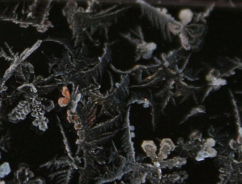Aamulla joka paikassa oli pakkasen luomia kiteitä.
