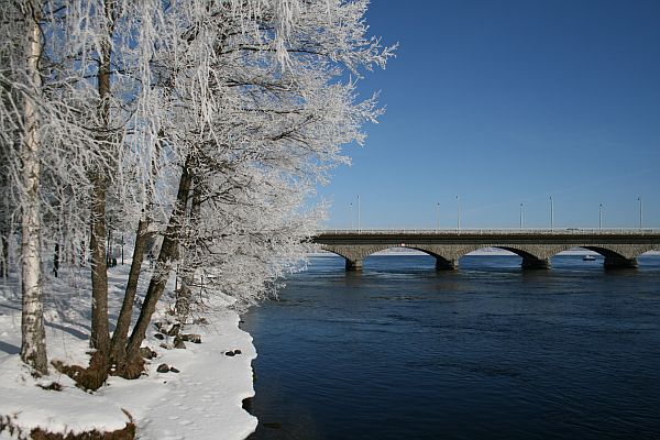 Näkymä sillan pohjoispuolelta, rannan kävelytieltä.
