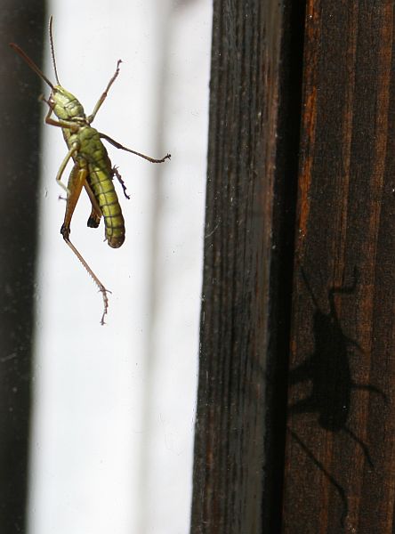 Isohko heinäsirkka oli lennähtänyt ikkunaan.