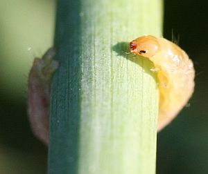 Pieni toukka kiersi heinänkortta.