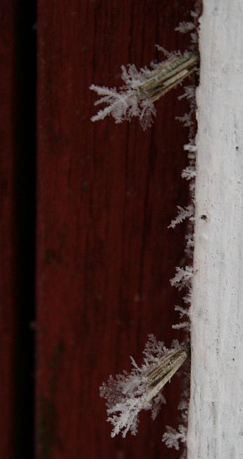 Yllätyin kun ulkorakennuksen seiniltä löytyi niitä risukasan kanssa mönkiviä ötököitä. Koskaan ennen ei talviaikaan ole tuolta seinältä osunut silmiin, vaikka useasti olen pakkasilmoilla kuvannut kuurahahtuvaisia hämähäkinseittejä ja jääkiteitä tuolta samaiselta seinältä. Ötökkäkirjan mukaan tämä laji on pikkusavupussikas.