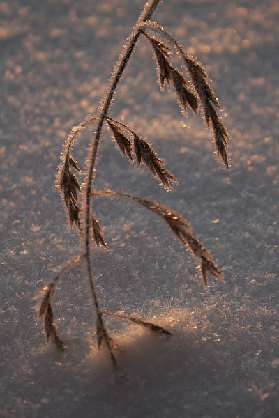 Nuokkuvan heinän kärki on jo hautautunut lumeen.
