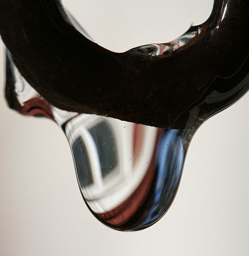 Metalliketjussa kimmelteli katolta valuvan veden pisarat, osa pisarasta oli vielä jäässä kun sulamisvesi jo juoksi ketjua pitkin alas. (19.3.)