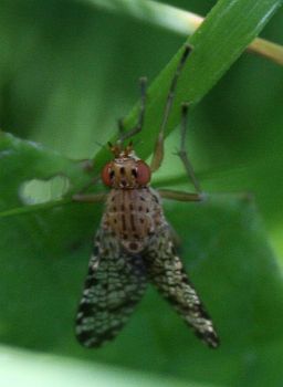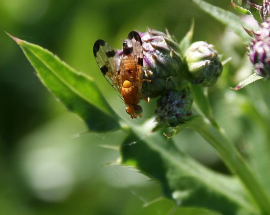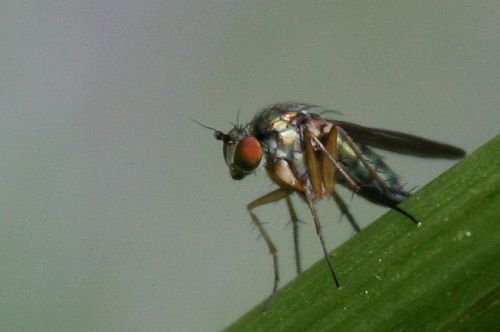 Oranssinruskehtava vihreäsilmäinen kärpänen.