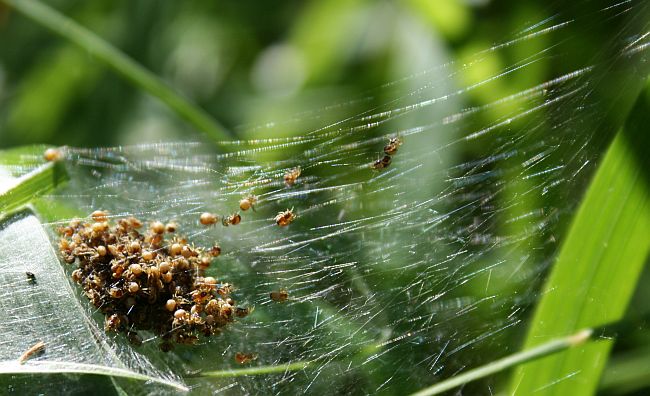 Hämähäkkivauvoja pesäverkossaan.
