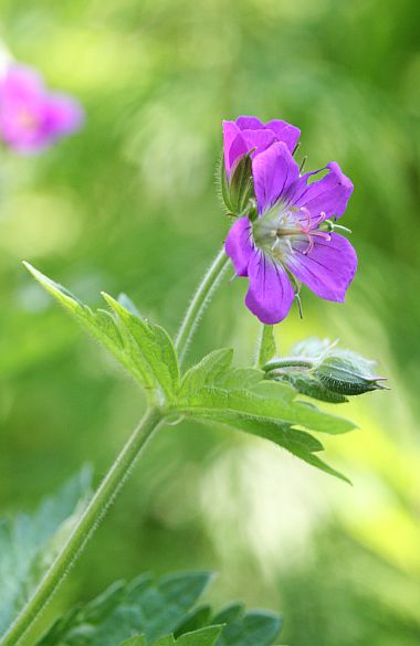 Kurjenpolvet kukkivat lammikon rannalla.