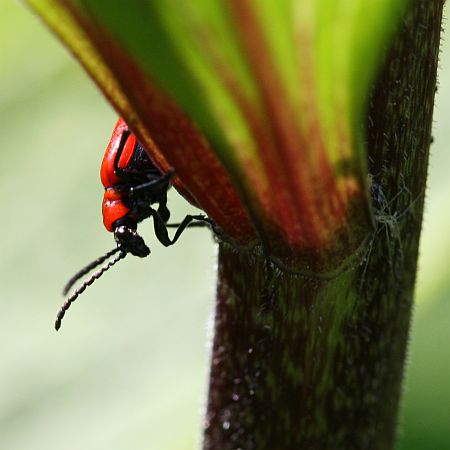 Liljakukon ryökäle kurkisteli liljan kätköistä.