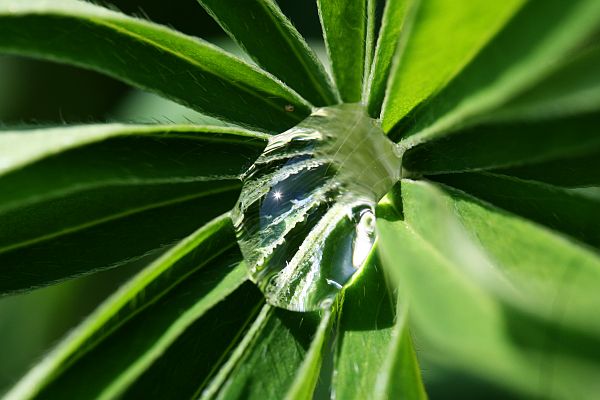 Lupiinin lehdellä kosteutta.