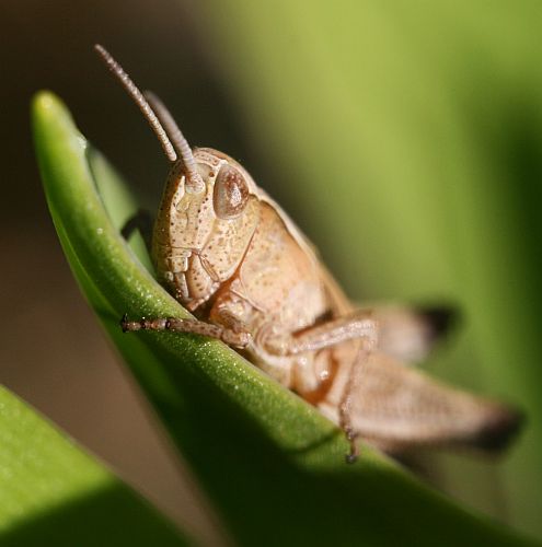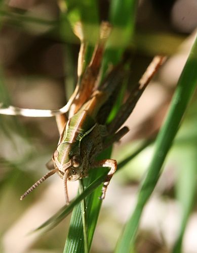 Heinäsirkka pääsi yllättämään. Täysikasvuinen sirkka lennähti jostain lähelle ja kun menin ottamaan kuvaa, se kai kasvatti kokoaan pelottavammaksi ojentelemalla takajalkojaan.