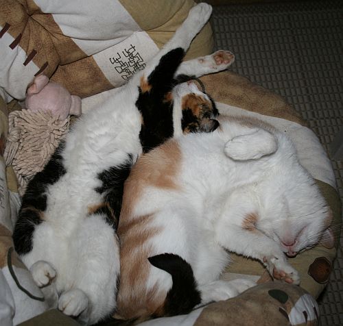 Jälleen nukkuivat hauskassa asetelmassa.