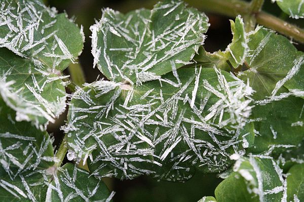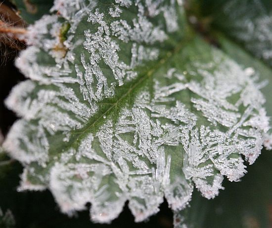 Mansikanlehden kuurakuvioita.