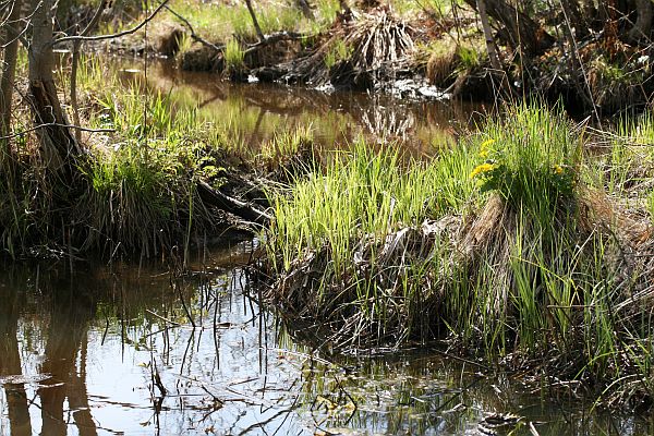 Joen ja lammen rantaa.