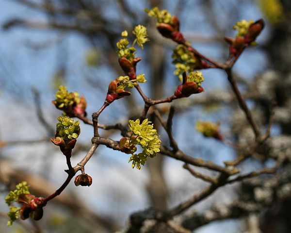 Vaahterakin alkoi lopulta kukkia täällä tuulisella paikalla.