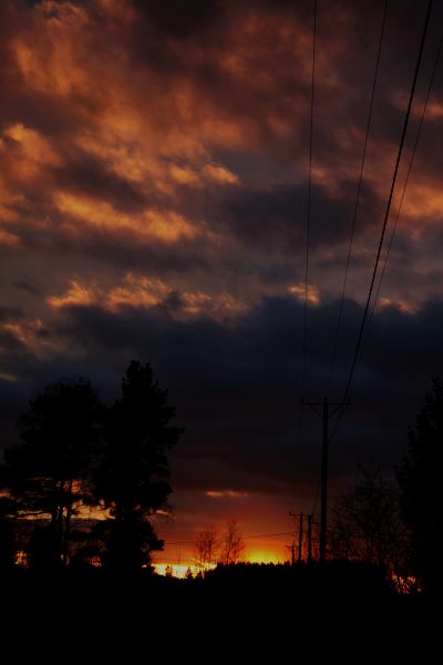 13.5. illalla auringon ympärillä oli kuin sateenkaari, selkeä ja leveä vihreä raita, joka ei meinannut tarttua kuviin millään, vaikka kovasti yritin. Tummensin kuvaa kuvankäsittelyllä, jolloin viherrys ehkä tuli hieman esille.
