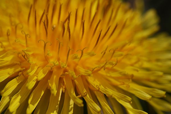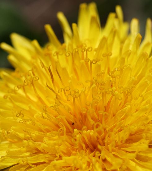 Toisen voikukan keskiön heteet eivät olleet vielä kihartuneet.
