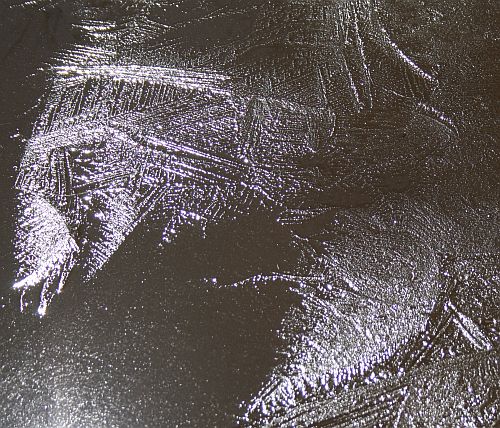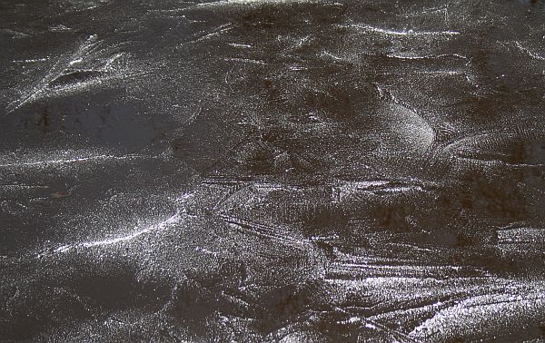 Yöllisen pakkasen jäljiltä lammikon pinta oli koristeellisen jääkerroksen peittämä.