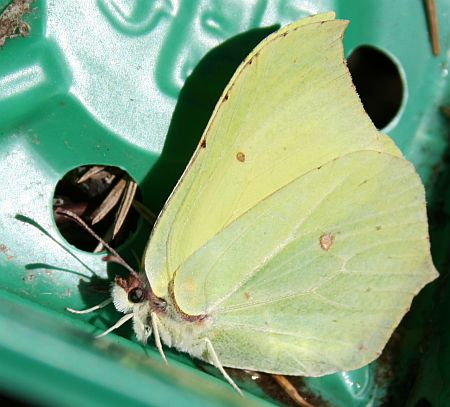 Muovinen istutusruukku kiinnosti sitruunaperhosta.