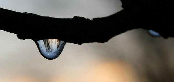 Lauantai-iltana ropsahti sadekuuro ennen auringonlaskua. Pisarat kimaltelivat illassa.