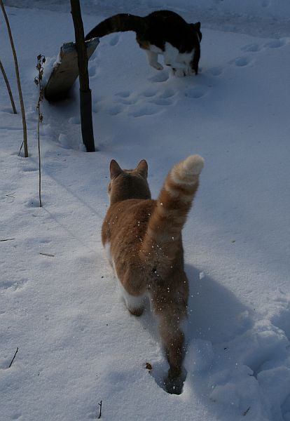 Tilkkutiina kipaisi omenapuuta tukevan laudan päälle. Ilme kertoi omaa kieltään siitä että karvapalleron tiedossa oli aivan selkeästi kyseisen ja kyseenalaisen toimenpiteensä luvattomuus…
