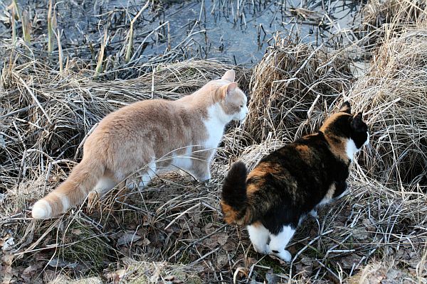 Eilen pienellä kuvauskierroksella kotipaihalla ja ihan lähellä. Kissat osallistuivat kulkemalla mukana ja tutkimalla ympäristöä: