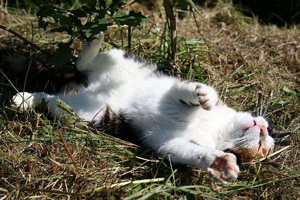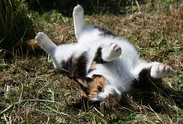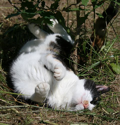 Tilkkutiina osaa poseerata - ja se nauttii siitä! Kieriskelyä juhannusaaton auringossa.