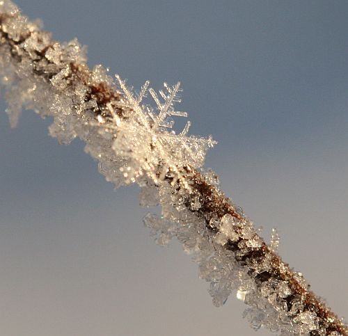 Kaunis kide kuuraisella oksalla.
