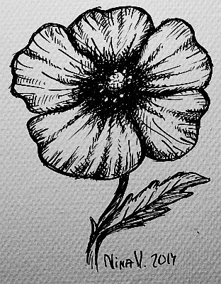 Suunnittelematon kokeilu mustekynällä. Unikko.
