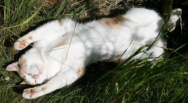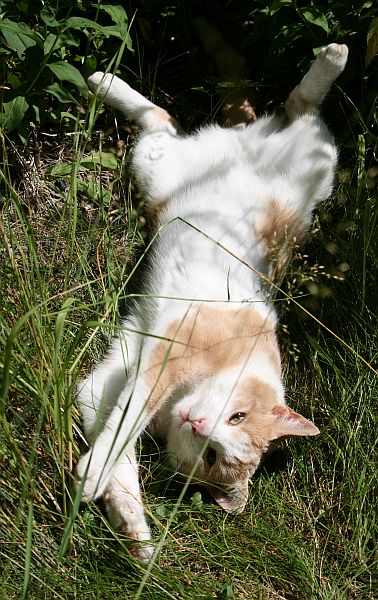 Eilen Tilkkutiina poseerasi kieppumalla jaloissani, mutta yllätäen Kinuskikin intoutui vähän kellistymään maahan ja nauttimaan lämpimästä iltapäivästä.