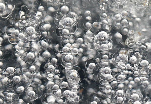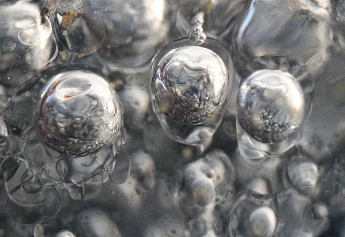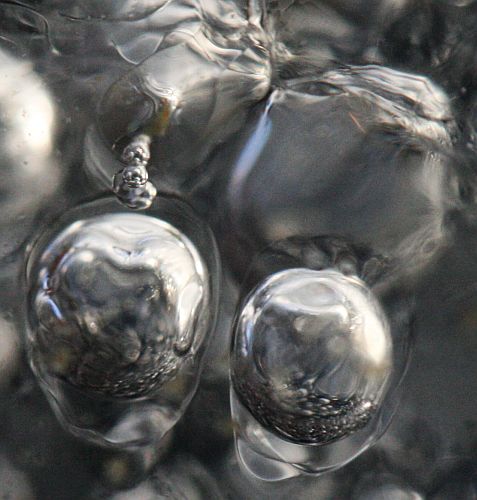 Vanhan muurinpadan jääkimpale on täynnä kuplia.