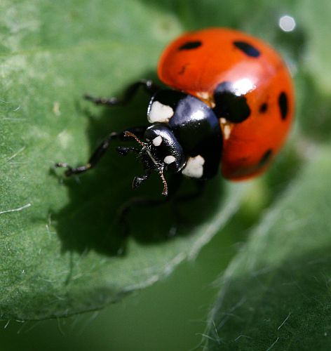 Utelias leppäkerttu (seitsenpistepirkko).