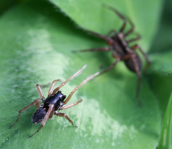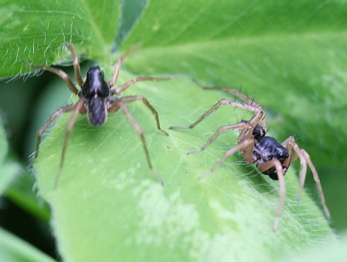 Apilapellolla kävi vilinä, kun hämähäkit (susihämähäkki?) suorittivat kosiomenojaan. Tässä yksittäinen koiras.