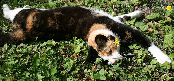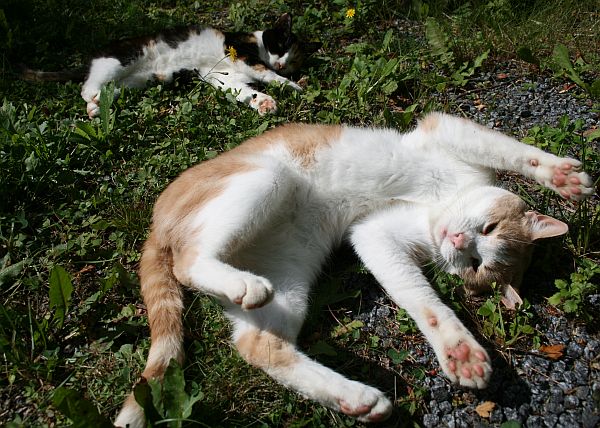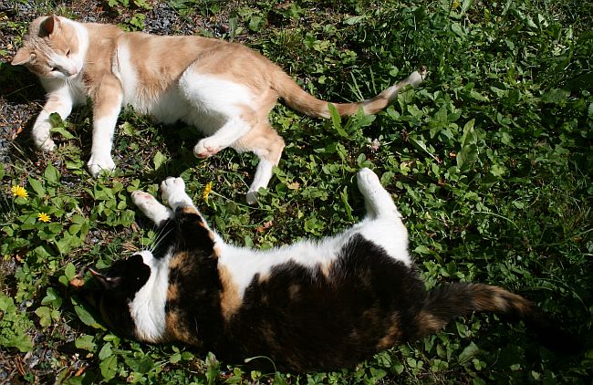 Tilkkutiina jälleen tapansa mukaan kelli ja kieritteli maassa poseeraamassa, mutta kerrankin Kinuskikin tuli mukaan hupailemaan.