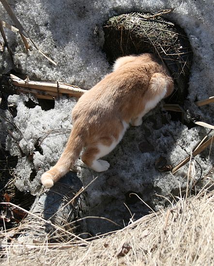 Kinuski olisi lähtenyt valuvan veden perässä tien alta menevään putkeen...