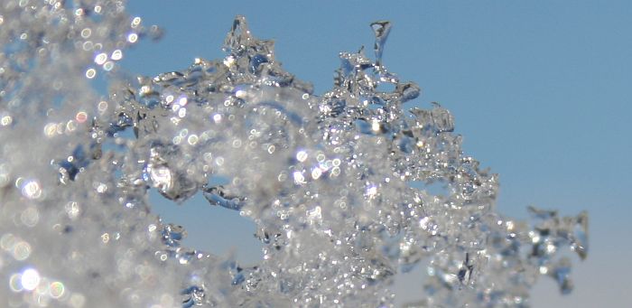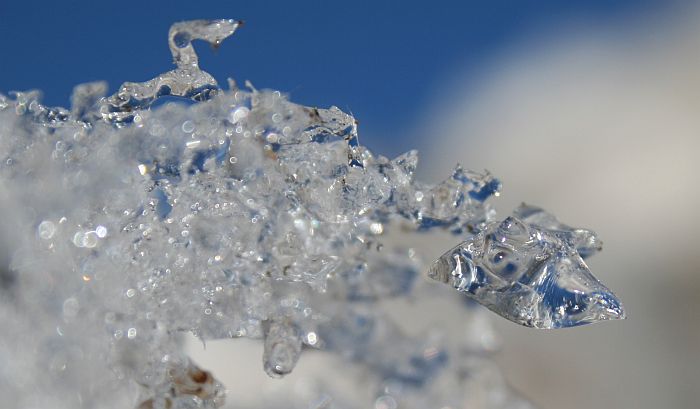 Taivas heijastuu lumessa.