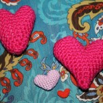 Innostuin kokeilemaan sydänten virkkaamista. Ensimmäisen tein Novita Seitsemästä veljeksestä, mutta en ollut tyytyväinen sydämen muotoon. Kehittelin muotoa ja seuraavankin tein Seitsemästä veljeksestä, muodosta tuli huomattavasti kauniimpi. Seuraava syntyi Novita Virkkauslangasta ja lopulta kaikkein pienin ompelulangasta.