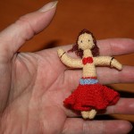 Oli jostain syystä ihan pakko päästä kokeilemaan ompelulangasta virkkaamista. Ja kuvittelin kovinkin pikkuisen työn sillä onnistuvani tekemään, siitä tuli kuitenkin paljon kookkaampi kuin ajattelin (ja halusin). Mutta melkein peukaloinen kuitenkin. Itämainen tanssijatar, mikäs muukaan… Ja luulenpa etteivät ompelulankakokeilut pääty tähän. 🙂
