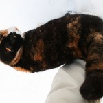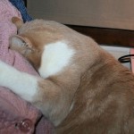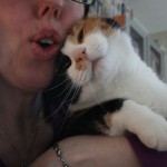 Eilen illalla Kinuski asettautui mielestäni oikeinkin hassuun asentoon sylissäni. Se painoi naamansa lähes kainalooni. 😀