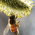 Keväisen lämmin, vaikkakin melko tuulinen päivä. Mehiläiset olivat ilmaantuneet pajuihin. Tuuli hankaloitti kuvaamista, kun oksat heiluivat lakkaamatta… Jokunen kuva sentään onnistuikin:
