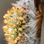 Lauantaina aurinko paistoi, vaikkakin tuuli aika voimakkaasti. Yleensä pajun kukinnan tässä vaiheessa on jo kuulunut surinaa pajukosta, nyt oli täysi hiljaisuus. Vain kärpäset olivat liikkeellä. Missä kimalaiset ja maamehiläiset viipyvät?