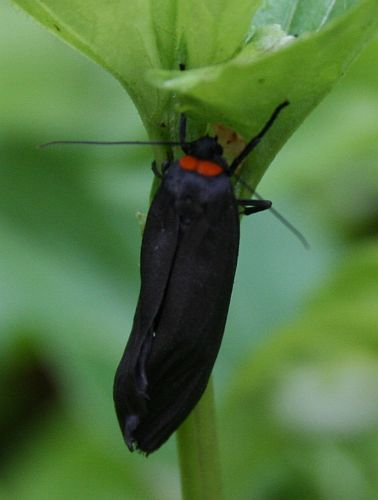 Hieman erikoisen näköinen musta perhonen tai korento.