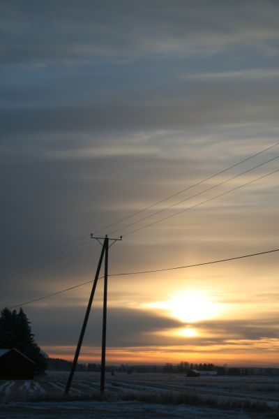 Auringon ollessa matalalla, ilmassa olleet jääkiteet hohtivat valoharsona.