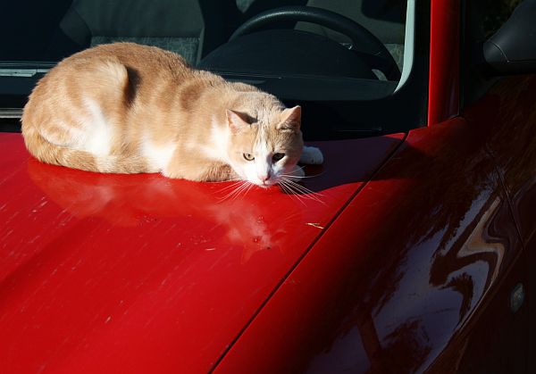 Kinuski taisi kerjätä huomiota hyppäämällä kiellettyyn paikkaan, auton päälle...
