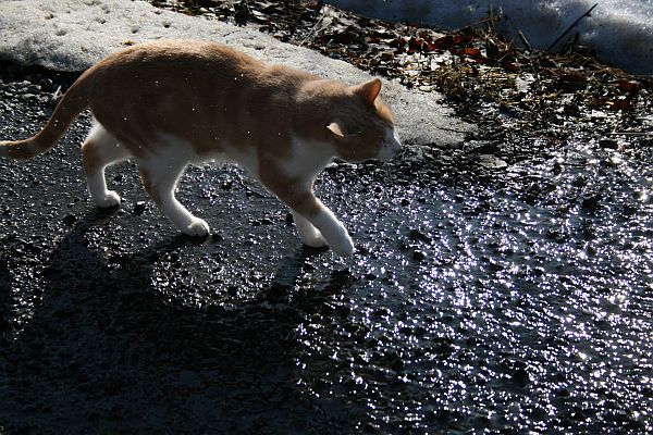 Tilkkutiina oli paljon rohkeampi, askeliaan venyttäen se ylitti virtakohdan.