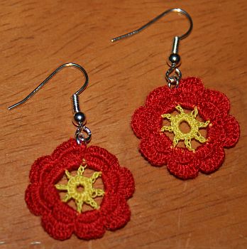 Päivän virkkauskokeiluna ruusukorvakorut.