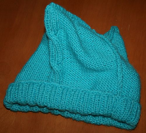 Pipo valmistui. Enpähän purkanutkaan ”väärälle” puolelle vahingossa ompelemaani takasaumaa, vaan ompelin myös päällisauman päällipuolelle. Nurjat puolet päällähän ovat käsittääkseni olleet aina välillä viime vuosina suorastaan muotiakin… 😀