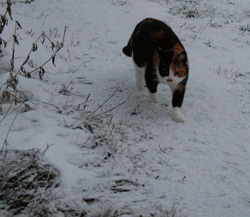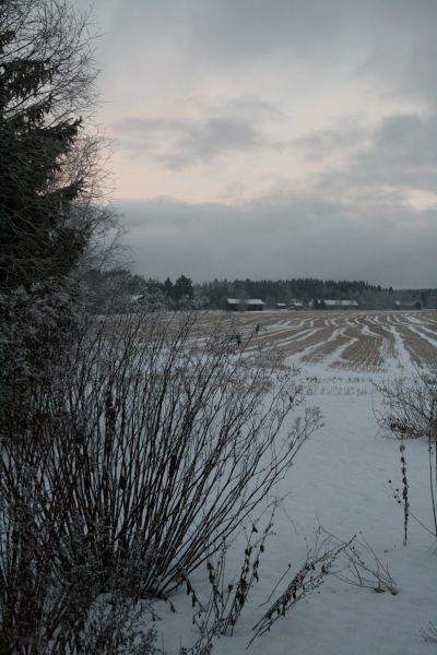 Eilen oli vielä ankea suojasää, mutta illalla alkoi sataa hiukan lunta joka jäi maahan. Tänään oli jo kauniimpaa, vaikka pakkasta ei juuri ollutkaan.