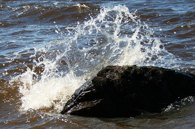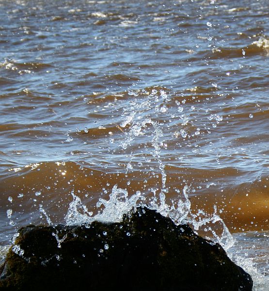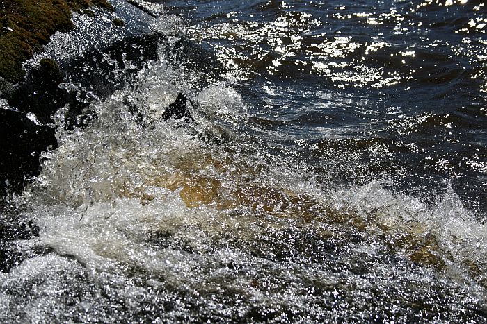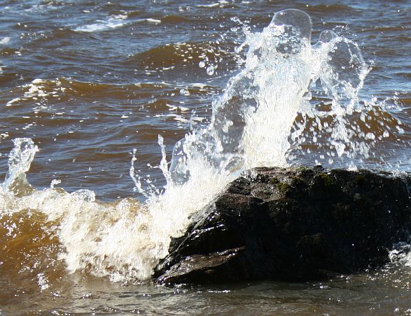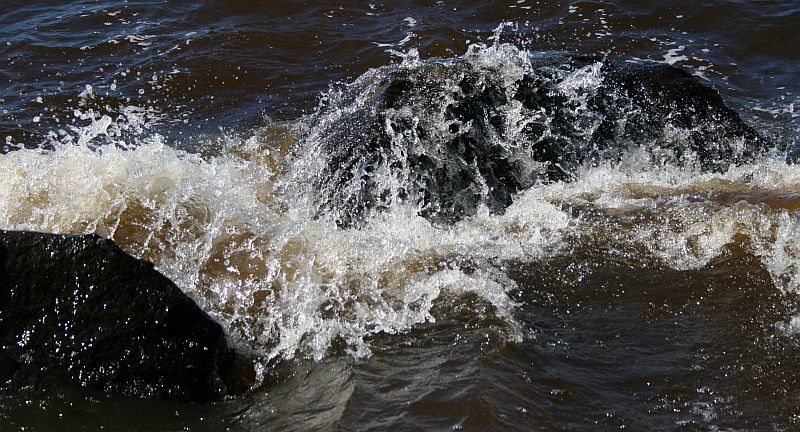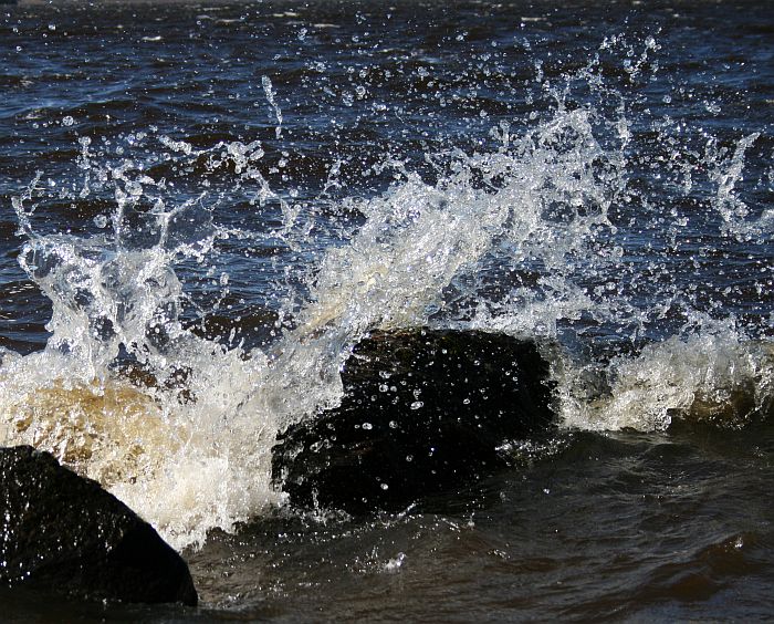 Aalto roiskahtaa kivien ylitse.