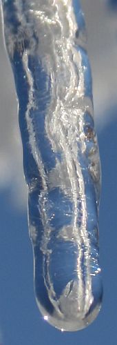 Kirkkaaseen jääpuikkoon heijastuivat viereiset jääpuikot.
