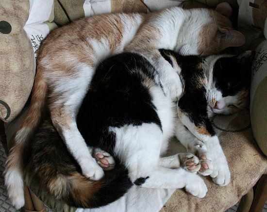 Ihan kuin tarkoituksella poseerattu. Todellisuus oli kuitenkin se, että kissat seurasivat minua ja kun jostain kaukaa kai kuului jotain epäilyttävää ääntä, ne jähmettyivät paikoilleen kuuntelemaan onko se vaarallista.