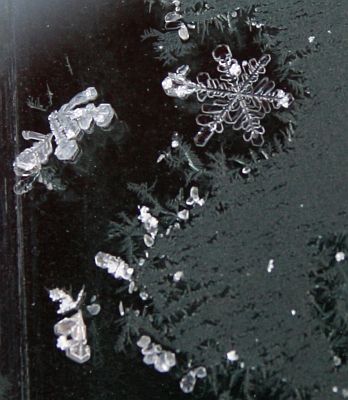 Perjantaina ja eilen oli upea auringonlasku. Tänään löysin auton pinnoilta upeita jääkiteitä!